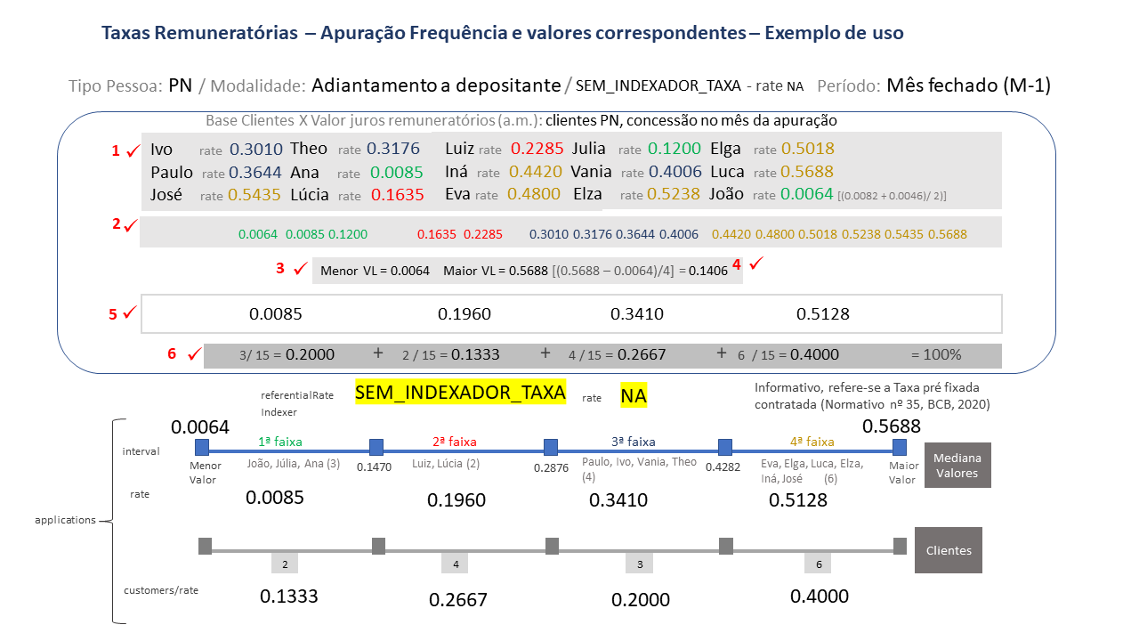 Sendo consideradas somente as operações “contratadas” no mês da apuração no cálculo e disponibilização de informações relativas a distribuição de frequência de Taxas remuneratórias.